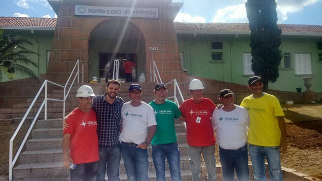 A Associação Italiana Vinhedense tem orgulho de participar da recuperação de nossa Santa Casa de Vinhedo. Congratulações ao prefeito Jaime Cruz, secretário Balu, secretário de Saúde José Bernegossi, aos voluntários,funcionários da Prefeitura, empresas e demais associações envolvidas. A Associação Italiana agradece aos sócios e colaboradores que compareceram. Na foto, o nosso presidente Julliano Gasparini com o prefeito Jaime Cruz, secretários, vereador Nil e amigos vinhedenses. ![]()