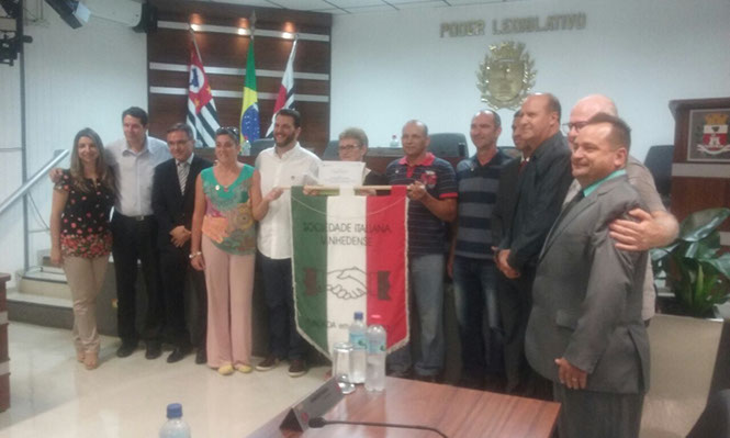 Recebemos nesta segunda-feira (5), a Moção de Congratulação da Câmara de VINHEDO, em homenagem ao evento de 21 de fevereiro, em que comemoramos o Dia do Imigrante Italiano no Brasil. A diretoria desta Associação Italiana agradece aos vereadores Nil Ramos (presidente da Câmara), Paulinho Palmeira e Marcio Melle, autores da Moção, que foi assinada por todos os parlamentares. ![]()