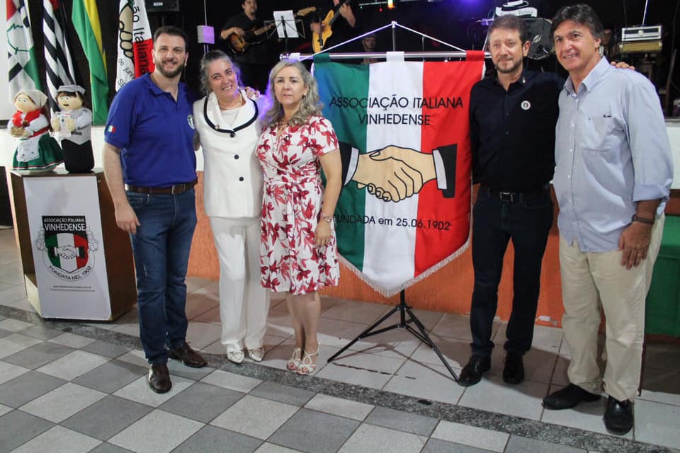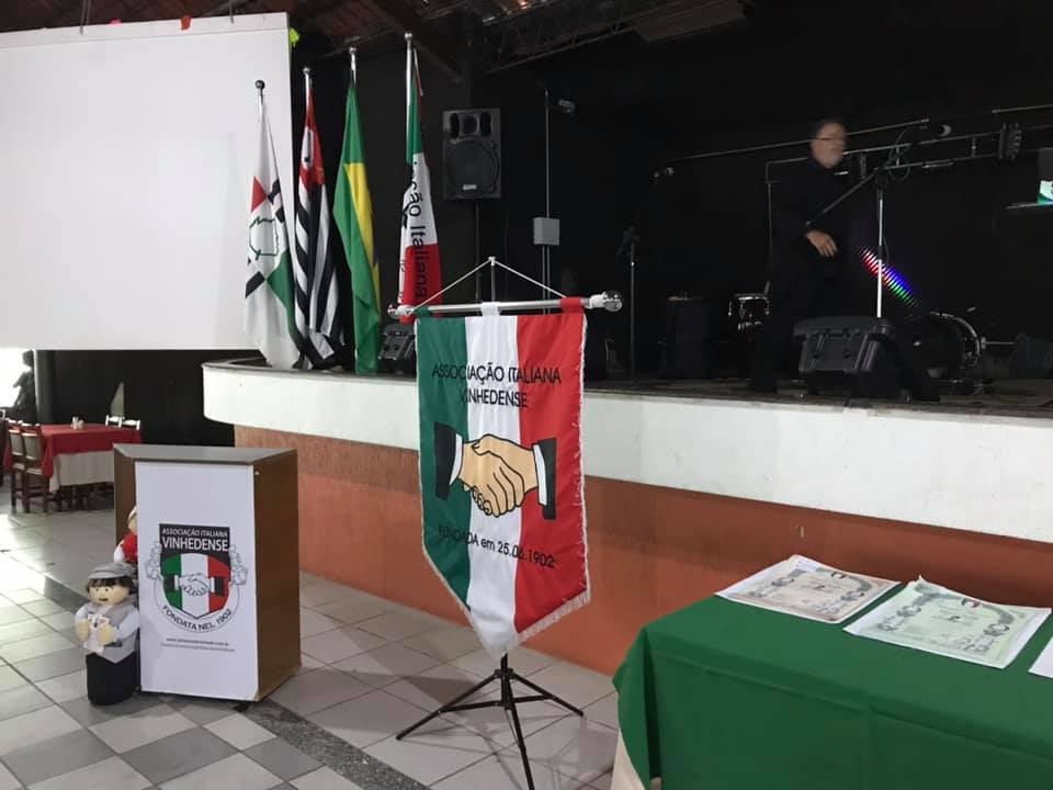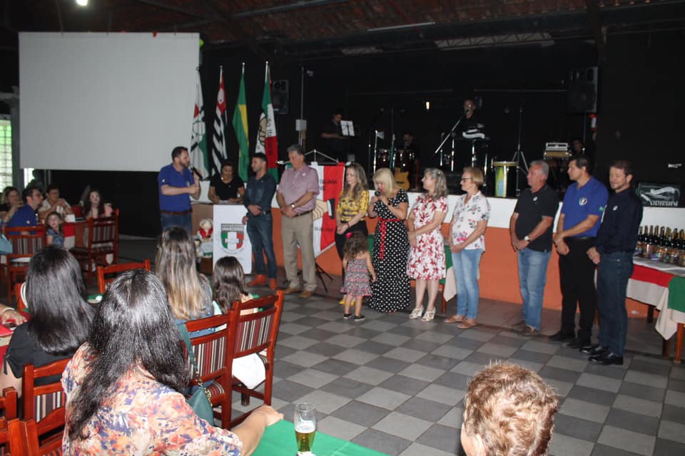 Às autoridades vice prefeita Claudineia Serafim , Nostra associada, secretário de Cultura Wagner Pavarin , também nostro associado, secretário de Assistência Social, Eduardo Galasso, presidente da Câmara de VINHEDO, Edu Gelmi, verador Nil Ramos, e ex prefeito José Carlos Gasparini, que nos presenteou com a recuperação da Praça do Imigrante Italiano.
