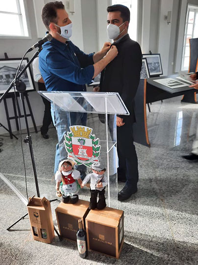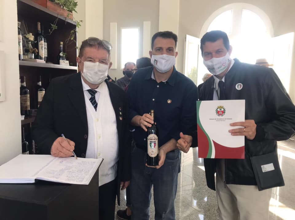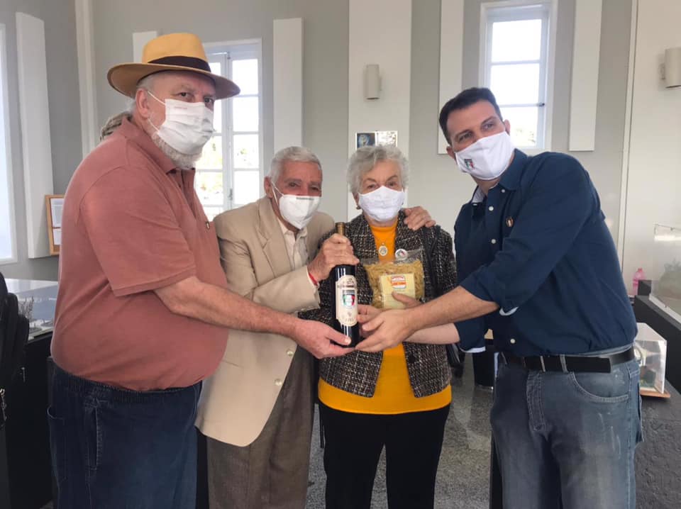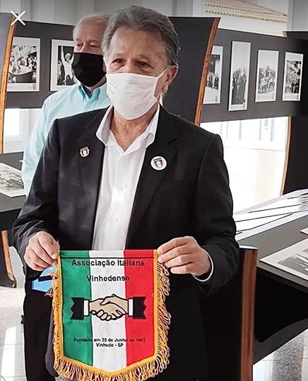 Na comemoração de nostro aniversário de 119 anos não teve festa por causa das restrições da Pandemia, porém, foi mais que simbólica. A Associação Italiana Vinhedense teve a oportunidade de eternizar o nome do presidente que ficou por mais tempo no cargo e renovou a esta instituição centenária: Tuto Gasparini, agora, dá o nome ao maravilhoso patrimônio histórico cultural, o Memorial do Imigrante Tuto Gasparini. A gratidão do presidente Julliano Gasparini e toda diretoria, através do associado Francisco Consollo, ao prefeito Dr Dario Pacheco, ao secretário de Cultura, Renato Romaneto, ao diretor de Turismo, também associado Heitor Gaudenci, à diretora de Cultura e também associada, Marli Geraldini, ao vereador Rubens Nunes (autor do projeto que da nome ao Memorial), ao diretor da Associação, e presidente interino da Câmara de Vereadores Nilton Braghetto, às famílias Baccetti e Canella, pelo vinho e pasta, presenteados no evento comemorativo, à associada Doca Maciel pela força de sempre, e ao patrocinador e parceiro Antonio Pedroni, da L’aretuseo. Grazie Mille.