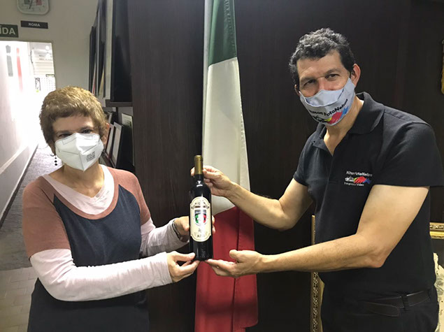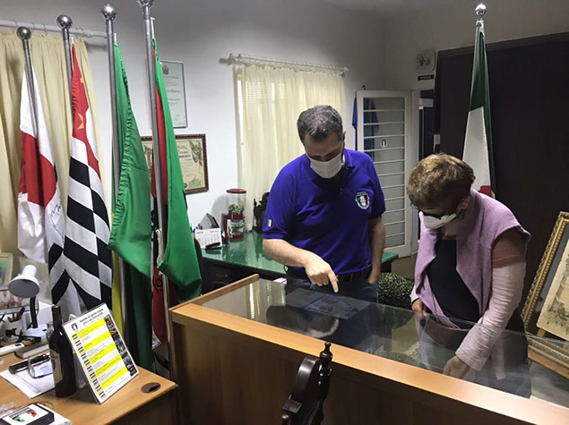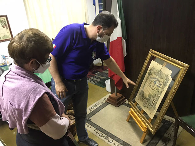 Adriana, que atua no laboratório de estudos da Faculdade de Filosofia Letras e Ciências Humanas do Departamento de História da USP, foi agraciada com produtos da Associação Italiana, como vinho Baccetti, e peças de artesanato típicos, além do Pin simbólico, como forma de agradecimento ao livro, que está exposto na sede da Associação.