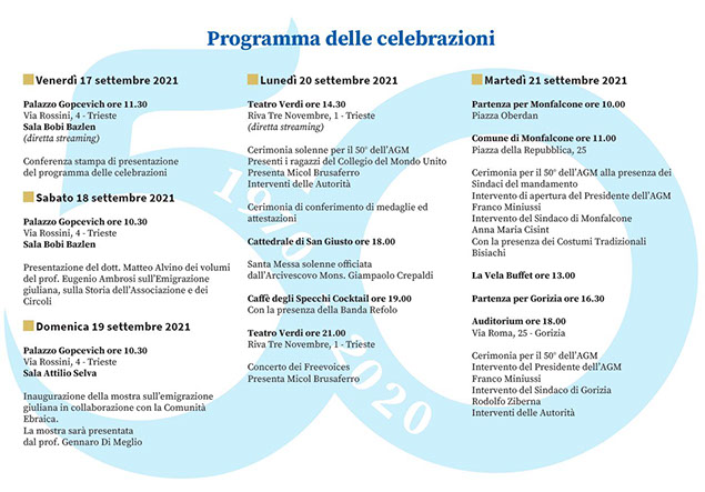 A Associazione Giuliani nel Mondo - da região de Venezza Giulia, que estabeleceu contato em 2018 conosco e abriu intercâmbio em 2019 com a Associação Italiana Vinhedense, comemora 50 anos, e nos convidou a participar das comemorações on line, devido à Pandemia.