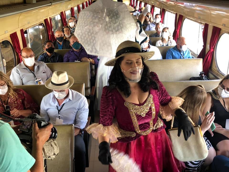 Os vagões são das décadas de 1930, 1950, 1960, 1970 e 80, restaurados pela Associação Brasileira de Preservação Ferroviária (ABPF). Há também um ‘carro restaurante’. As estruturas são variáveis. Na Estação de LOUVEIRA, os visitantes e moradores da cidade podem ver e participar devatrações culturais como apresentações de dança e música, além de food trucks, venda de artesanatos e exposição de empreendimentos turísticos do município. Há ainda passeio de charretes. Já em VINHEDO, os passageiros são recebidos pela Corporação Musical, e podem apreciar restaurantes da cidade, visitar o Memorial do Imigrante ‘Tuto Gasparini’, e o Mosteiro de São Bento. Na última parada, VALINHOS apresenta a bela arquitetura de sua Estação e o museu ferroviário.