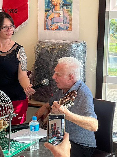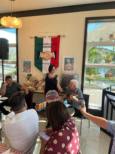 Em nossa Festa Della Mamma, em comemoração ao Mês das Mães, realizada no Hotel Intercity Vinhedo, nada como ouvir o tradicionalíssimo Carlinhos Novelli, 70 anos como alfaiate em Vinhedo, 80 anos de pura sabedoria e alegria. Nas horas vagas, exímio cantor. Deu uma palhinha em italiano pra gente.