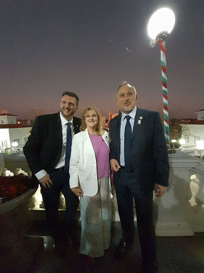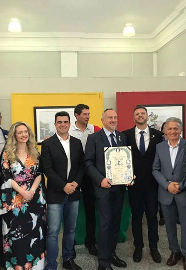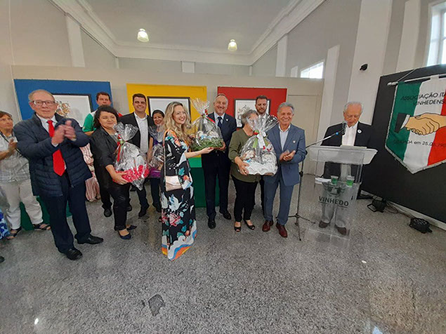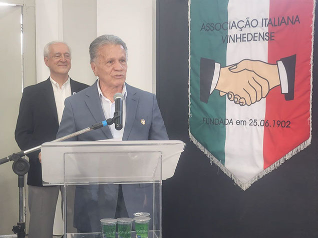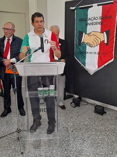 Excelentíssimo senhor correspondente consular da Itália, Fratello Álvaro Cotomacci secretário de Cultura e Turismo, Fratello Renato Romanetto, o qual cumprimento todos secretários e diretores Fratello e nosso diretor tesoureiro da Associação Italiana, vereador Nilton Braghetto, presidente da Câmara de Vinhedo, Saudações ao presidente dos Comites, Alberto Salvatore Mayer, o qual cumprimento todos os membros, em especial Zolli e Fernanda Sorella Celia Pescarini, em nome da qual cumprimento todos os representantes de Associações e Circolos Italianos da região aqui presentes