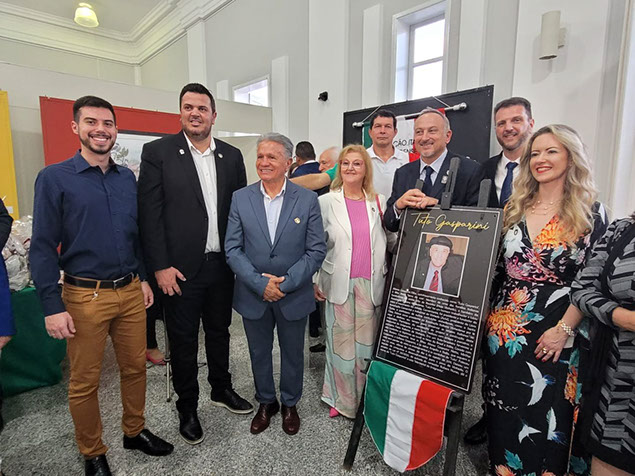 Fratello vereador Rubens Nunes, autor do projeto que denomina este Memorial do Imigrante com o nome do meu pai , Tuto Gasparini, o qual cumprimento todos os membros do legislativo