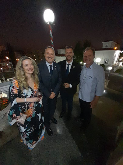 O presidente da Associação Italiana Vinhedense, Julliano Gasparini, junto aos membros da diretoria, do prefeito Dr Dario Pacheco, do secretário de Cultura, Renato Romanetto, do presidente da Câmara de Vinhedo, Nilton Braghetto, e demais autoridades Vinhedenses e regionais, tiveram o prazer em receber neste sábado (1), na nossa cidade, o Cônsul da Itália Domenico Fornara, o presidente dos Comitês Italianos de São Paulo, Alberto Salvatore Mayer e o Correspondente Consular da Itália na RMC, Álvaro Cotomacci, além de várias autoridades da cidade e região que vieram prestigiar a segunda fase das obras do Memorial do Imigrante Tuto Gasparini e estreitar as relações Vinhedo - Itália. Foi uma tarde muito agradável e repleta de boa música, conversa, dança e muitas possibilidades para Vinhedo.