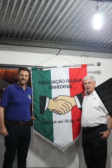Além da presença do presidente Julliano Gasparini, de parte da diretoria, do tesoureiro desta Associazione e presidente da Câmara de Vinhedo, Nilton Braghetto, tivemos a honra da companhia do também associado Dr. Dario Pacheco e primeira dama Maria Helena