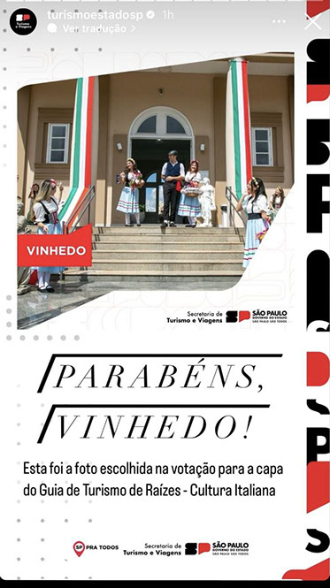 Vinhedo foi escolhida a cidade ‘mais italiana do Estado de SP’ e será capa do Guia de Turismo de Raízes, na comemoração dos 150 anos da Imigração Italiana no Brasil.