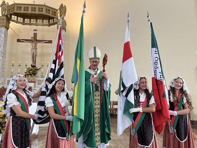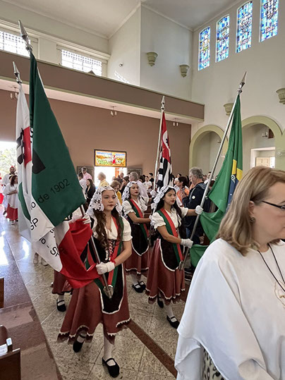 Neste domingo (23), foi realizada a Missa em Italiano celebrada pelo bispo diocesano Dom João Inácio Müller - @domjoaoinaciom e padre Norberto Tortorelo Bonfim - @norberto.2104 na Paróquia de Sant’Ana - @paroquiasantanavinhedo, em Ação de Graças aos #122 anos da Associação Italiana Vinhedense e #150 anos da Imigração Italiana no Brasil.