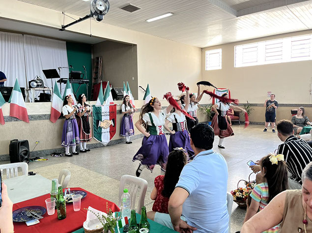 Além de muito macarrão, massas frescas, houve a apresentação do Grupo Folclórico Là Bella Tarantella, da Associazione Italiana Vinhedense e show com o italianíssimo Jonas Francesco (Francisco). Auguri!