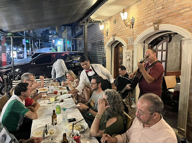 Após as atividades no museu, nosso grupo de associados dirigiu-se ao tradicional bairro do Bixiga, conhecido por sua forte influência italiana, para um jantar especial no restaurante “C… Que Sabe!”. Fundado em 1931, este estabelecimento é um verdadeiro ícone da cultura italiana em São Paulo, oferecendo uma experiência gastronômica autêntica e acolhedora. A atmosfera do restaurante, repleta de história e tradição, proporcionou o ambiente perfeito para celebrarmos nossa herança cultural.