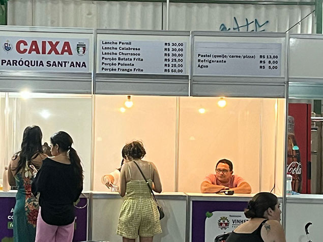 - *Local:* Stand da Paróquia Santana e Associação Italiana Vinhedense