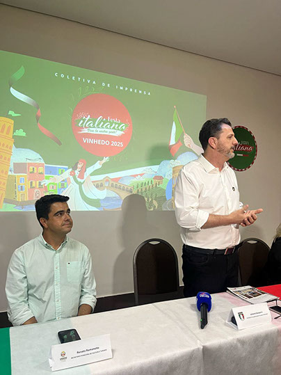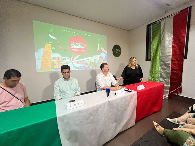 A Festa Italiana foi lançada nesta terça-feira (25) em coletiva de imprensa realizada no Hotel Intercity. Participaram jornalistas, influenciadores digitais, o presidente da Associação Italiana Vinhedense, Julliano Gasparini (que também é vice-presidente da Acivi), a diretora da Elo Produções, organizadora do evento, Renata Tannuri Meneghetti, e o secretário de Cultura e Turismo de Vinhedo, Renato Romanetto. A expectativa de público na primeira edição é de 30 mil pessoas. “Estamos mantendo a tradição de nossos antepassados de reunir parentes e amigos num evento com excelente gastronomia e grandes atrações culturais, entre elas o show de Tony Angeli, no sábado”, disse Julliano, que também é presidente do Conselho Municipal de Turismo (ComTur) e provedor da Santa Casa.