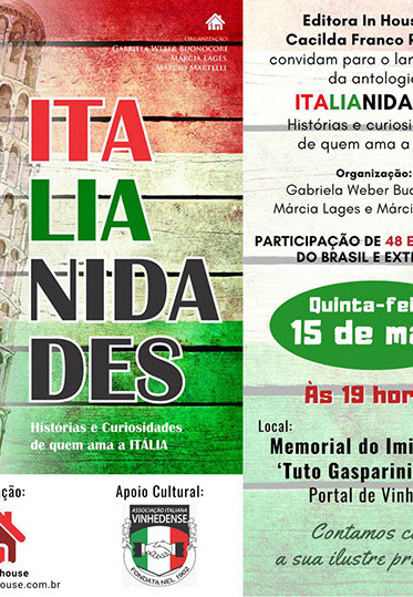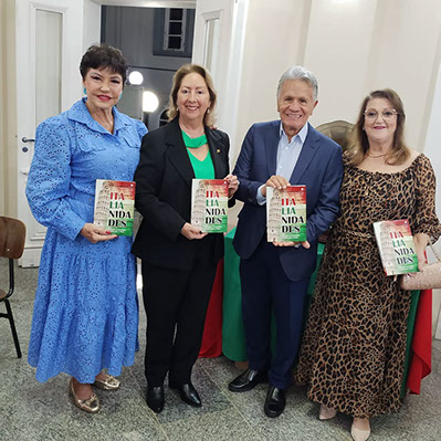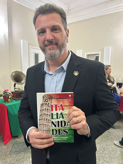 Nesta quinta-feira (15), o presidente da Associação Italiana Vinhedense, Julliano Gasparini, a vice Beatriz Cavalli, e a diretora Inês Gasparini, além de associados, participaram do lançamento da antologia Italianidades – Histórias e Curiosidades de Quem Ama a Itália, um evento emocionante realizado no Memorial do Imigrante “Tuto Gasparini”, no Portal de Vinhedo.